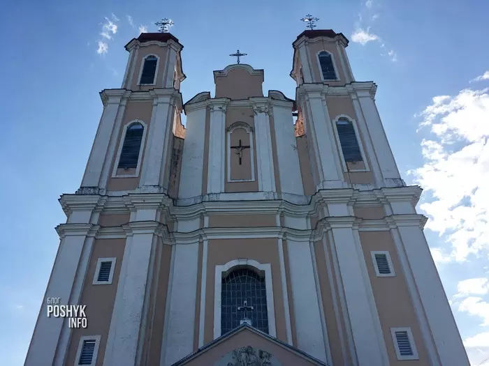 Цікава выглядае і фасад, які мае ўвагнута-выпуклую цэнтральную частку.