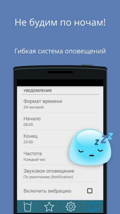В суете рабочих будней мы частенько забываем пить воду, что влечёт к обезвоживанию организма. А это, в свою очередь, плохо сказывается на здоровье, нашем эмоциональном и физическом состоянии. Приложение «Water Time» (Время пить воду) поможет вам более внимательно относиться к своему организму. Для этого вам нужно настроить определённые параметры (как ваш вес, частота приёма жидкости, предполагаемый объём). В определённое время вам будут приходить уведомления с напоминаниями, что нужно выпить стакан воды. Простое приложение, которое поможет вам стать здоровее.
