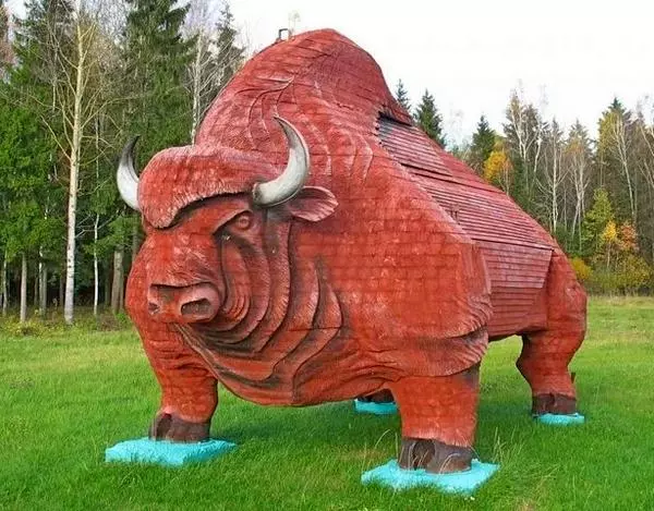 Такая скульптура зубра стаяла каля сядзібнага дома ў Савейках